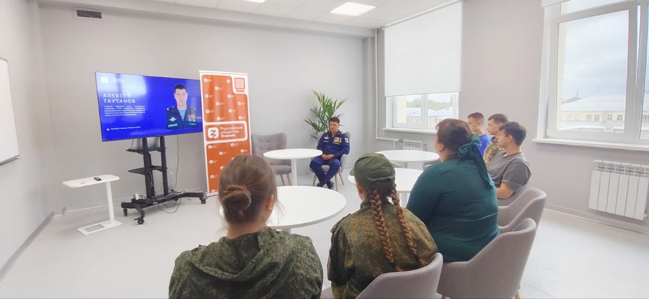На базе Ивановского государственного университета в аудитории партнера университета АО «Альфа-банк» состоялась встреча членов военно-патриотического клуба «Белые волки» ДОСААФ России г. Иванова с участником Специальной военной операции, кавалером ордена Мужества Алексеем Таутановым.