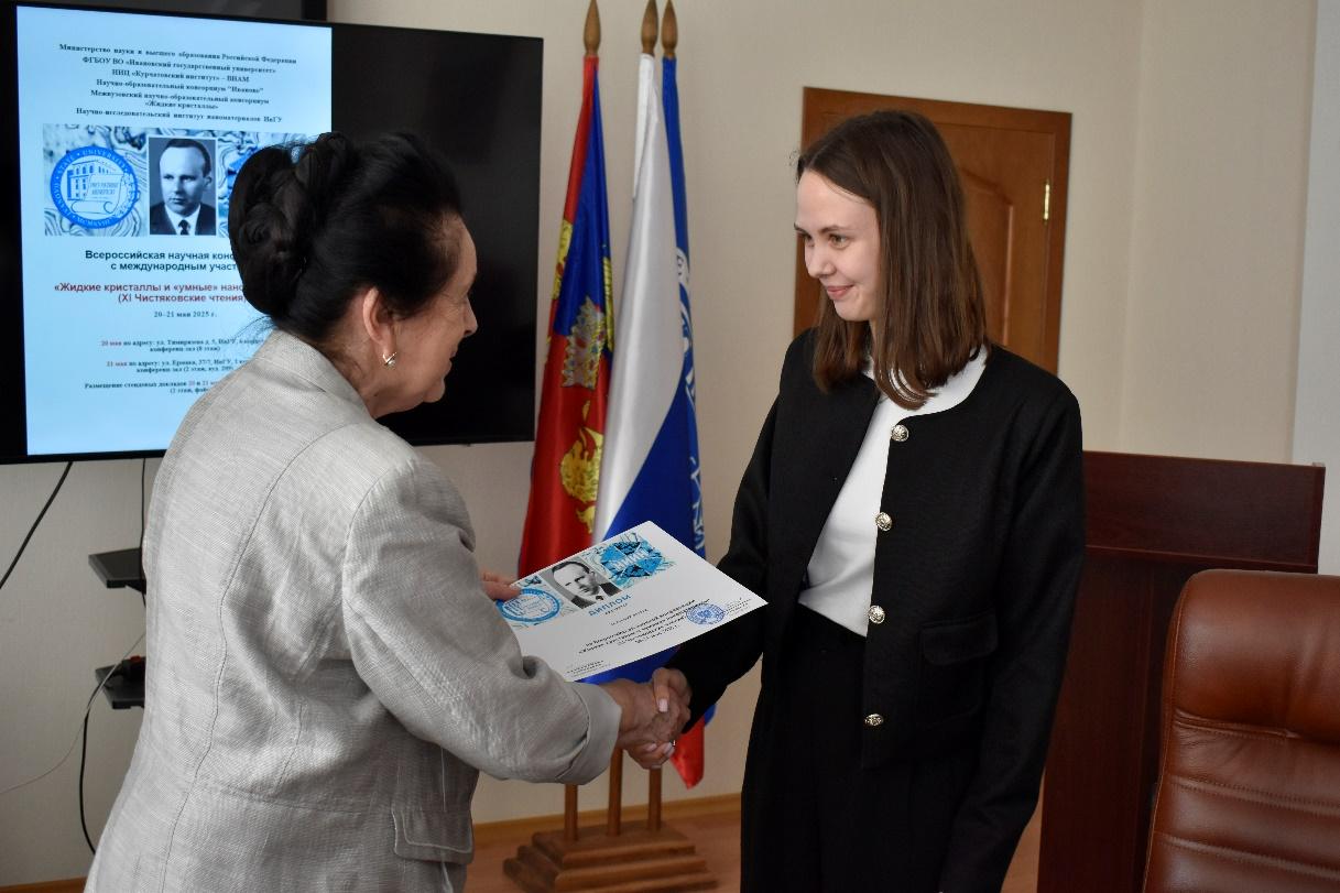 - Fedorov M.S., Giricheva N.I., Syrbu S.A., Belova E.A., Filippov I.A., Kiselev M.R. New supramolecular hydrogen-bonded liquid crystals based on 4-alkylbenzenesulfonic acids and 4-pyridyl 4′-alkyloxybenzoates: quantum chemical modeling and mesomorphic properties. Journal of Molecular Structure. Vol. 1244. 130890 (7 p.). DOI: 10.1016/j.molstruc.2021.130890 (WoS, Scopus Q3).